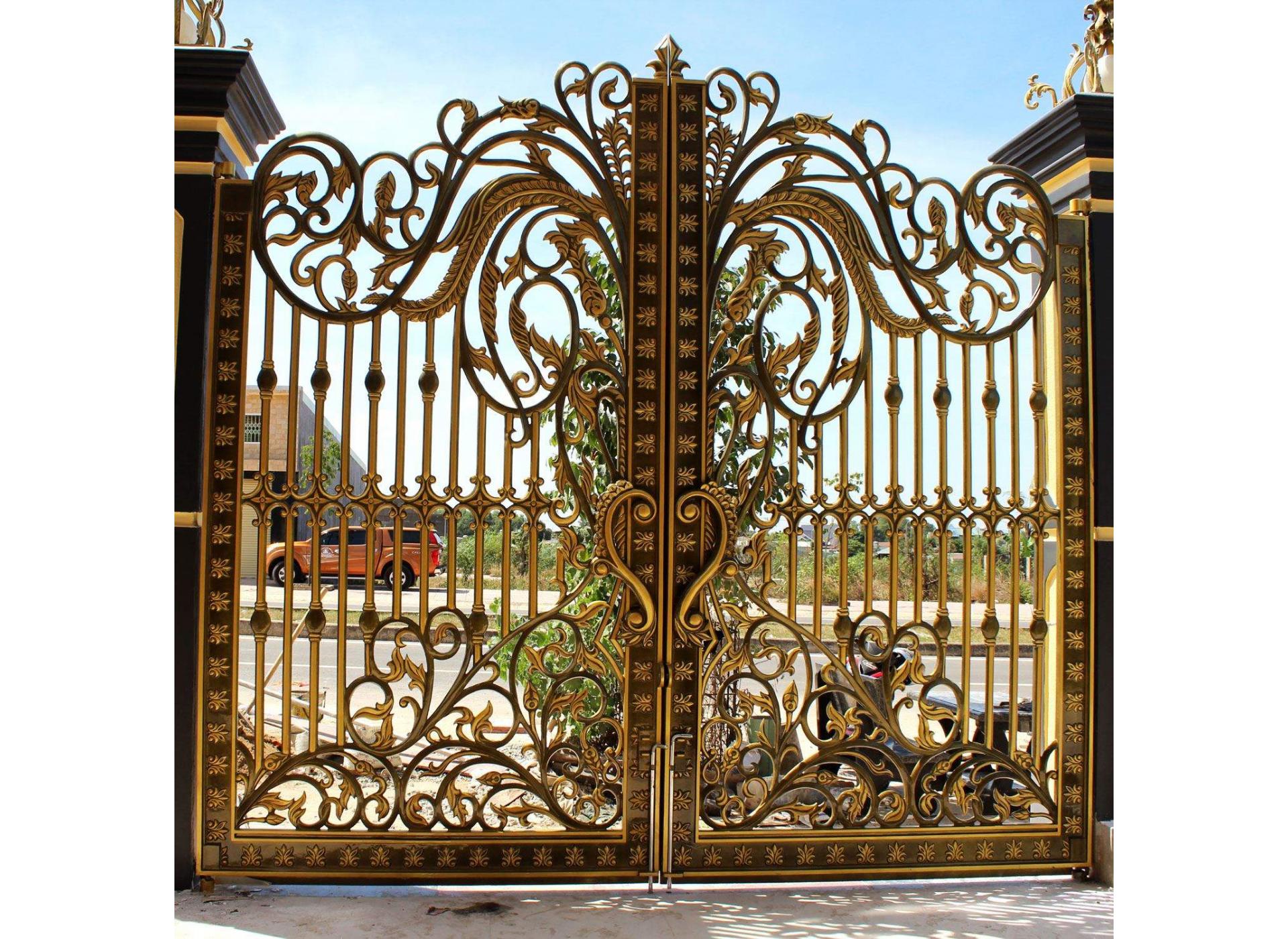 - Cổng nhôm đúc hoa lá tây 2 cánh