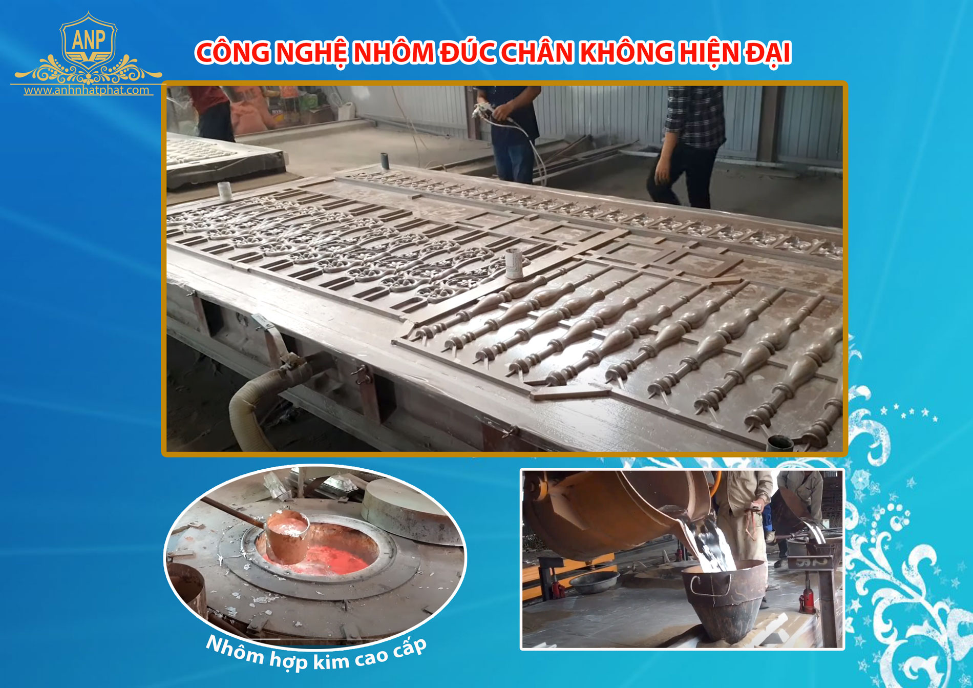 Anh Nhật Phát đã áp dụng công nghệ đúc chân không của Nhật Bản để cho ra các sản phẩm Cổng nhôm đúc cực kì sắc nét và đạt đến độ chắc chắn cao.