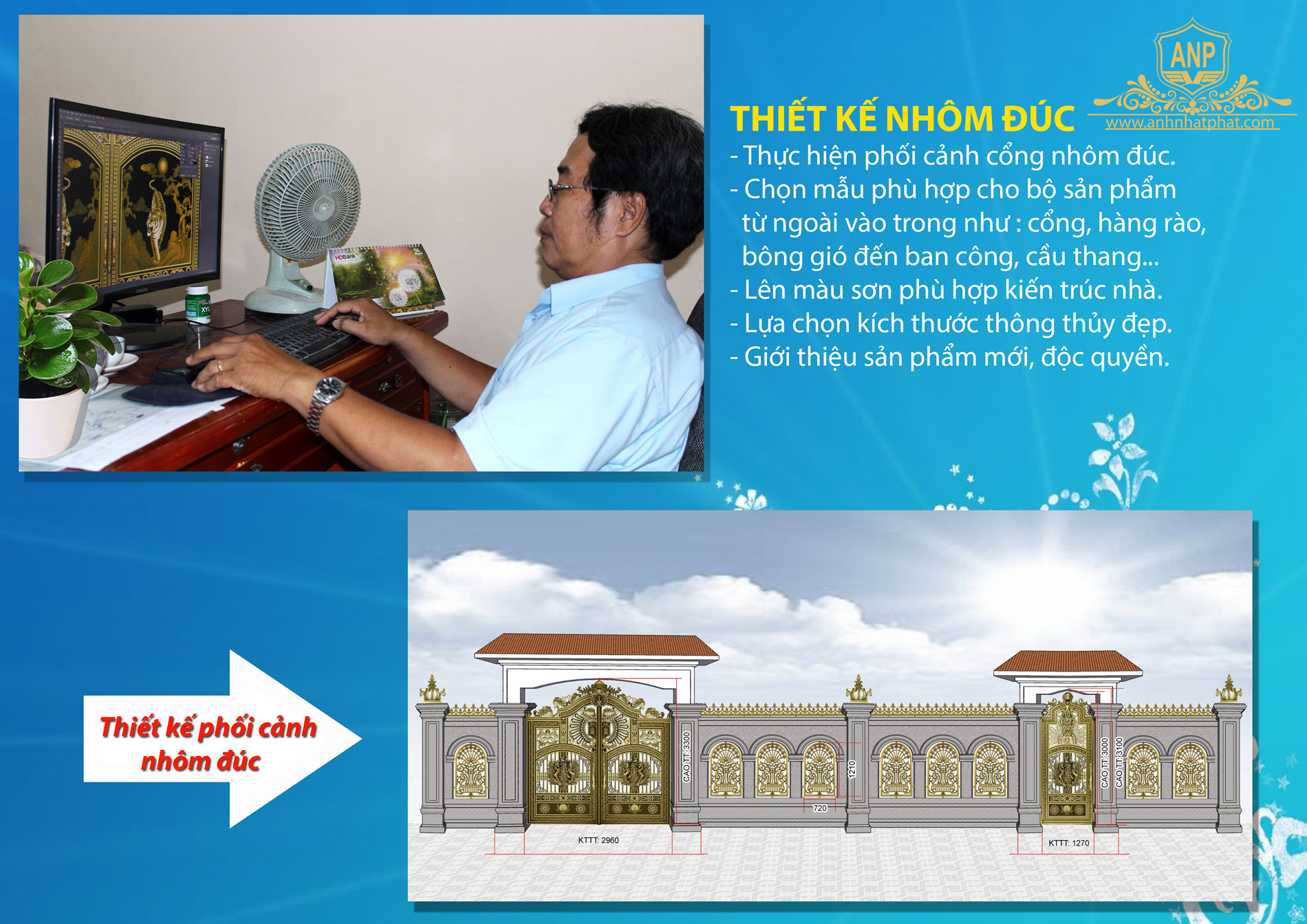 Bước quan trọng nhất trong sản xuất Cổng nhôm đúc là khâu thiết kế, vì nếu chọn mẫu hay màu sơn không phù hợp với